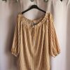 Bluzka hiszpanka w pomarańczowo-białe paski, 3/4 rękaw M