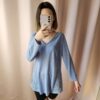 Tunika ma piękny, niebieski kolor i jest wykonana z lekkiego materiału, co sprawia, że jest przewiewna i wygodna w noszeniu. Długie rękawy dodają jej elegancji, a dekolt w kształcie litery V podkreśla szyję. Po bokach znajdują się koronkowe detale, które dodają tunice delikatego i romantycznego wyglądu.